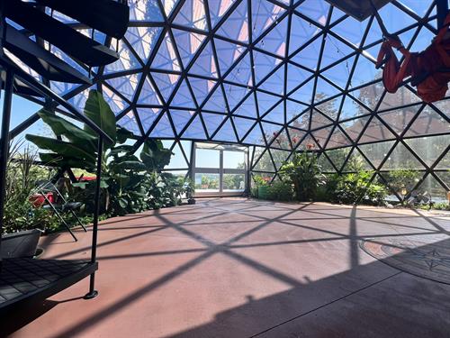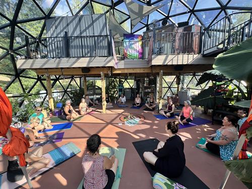 Join us in our one-of-a-kind Yoga Dome, surrounded by lush tropical plants and boasting stunning views of Lake of the Ozarks. Our dome features tinted glass for privacy, air conditioning, and heating, making it a comfortable sanctuary open year-round.